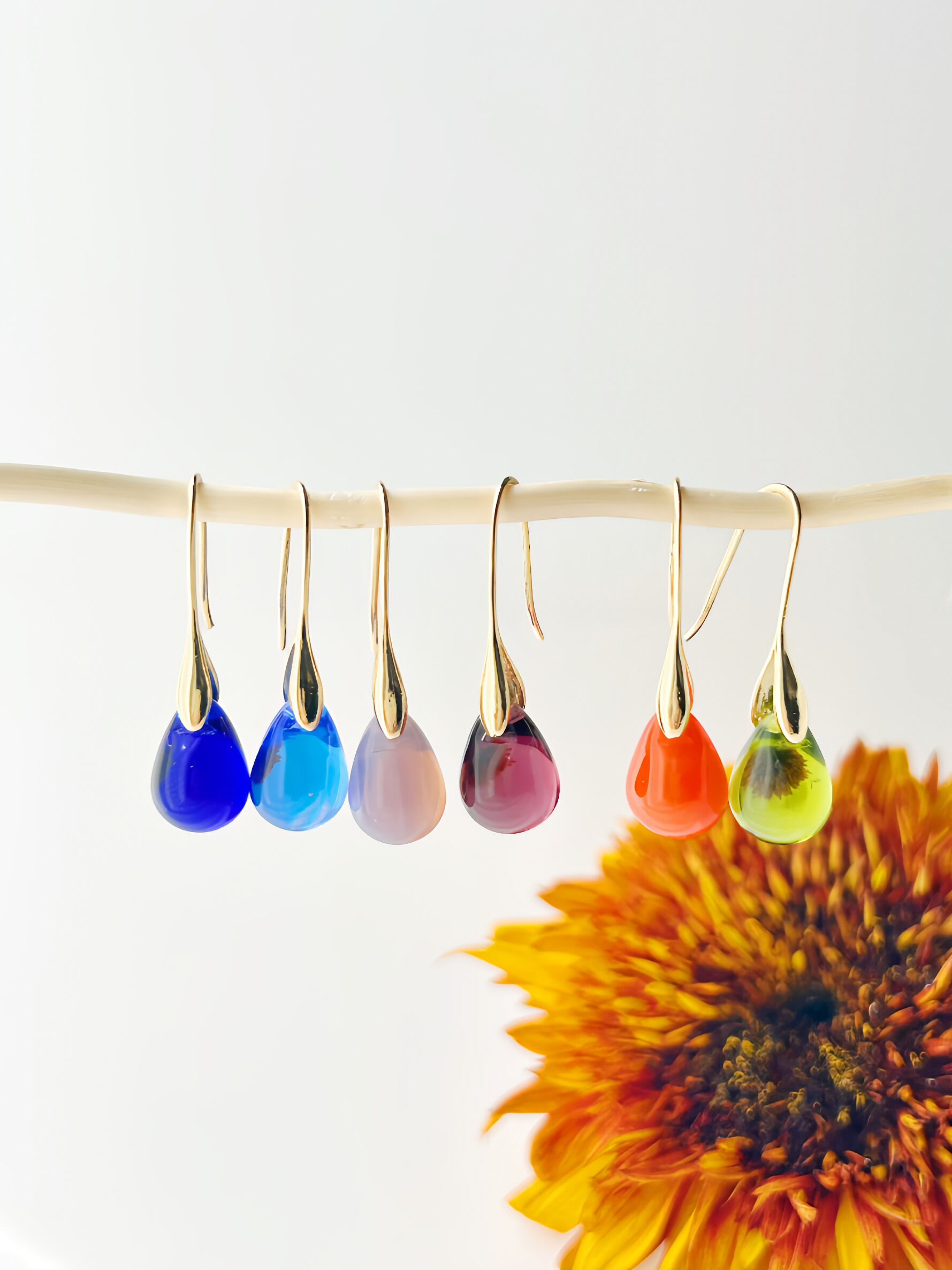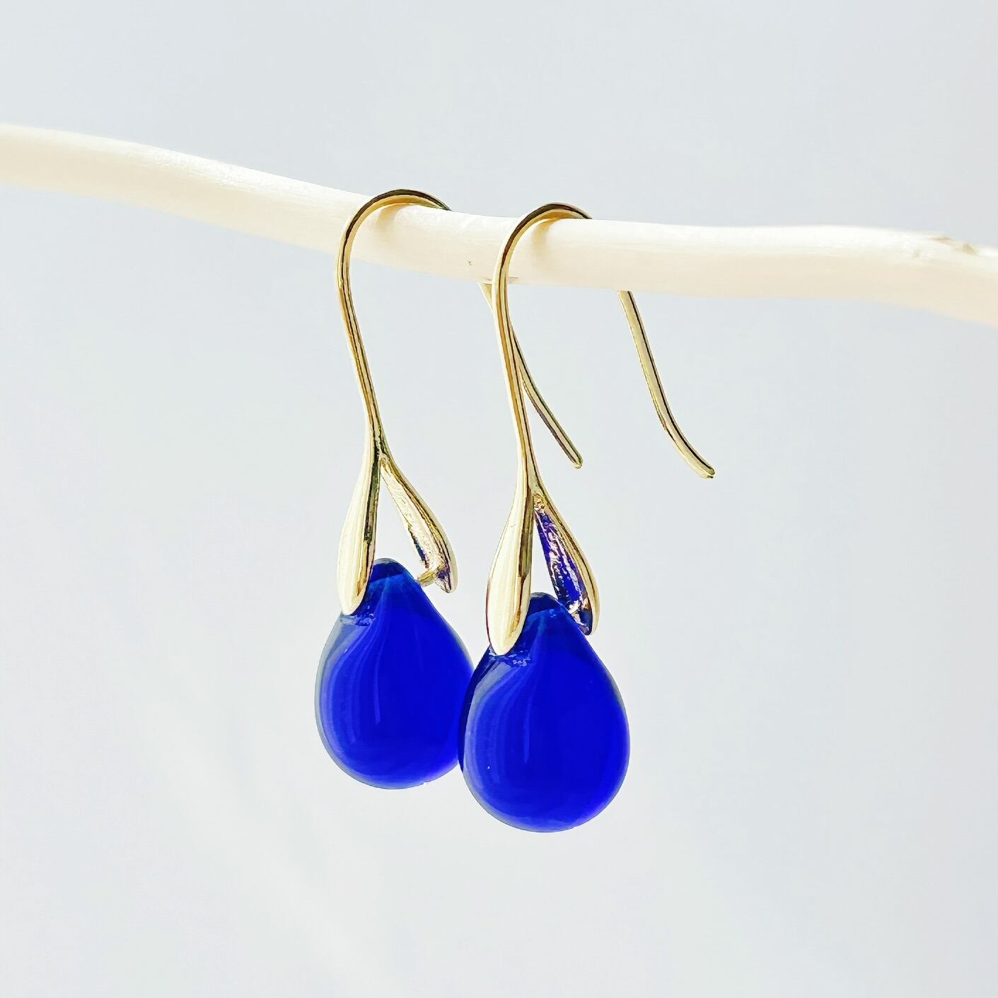 チェコの工房で丁寧に作られたプレスビーズを使用した、深いブルーのしずく。