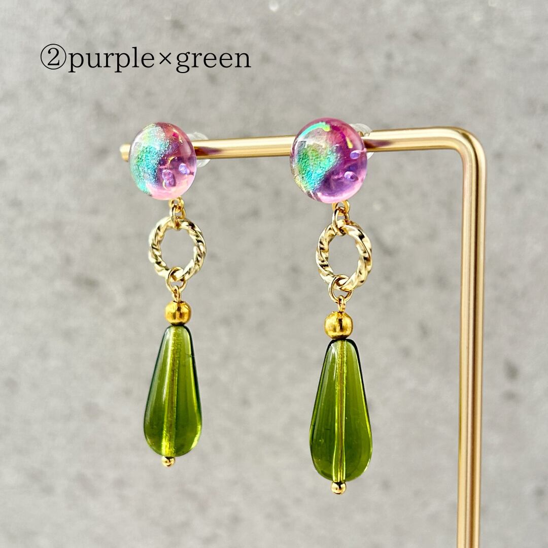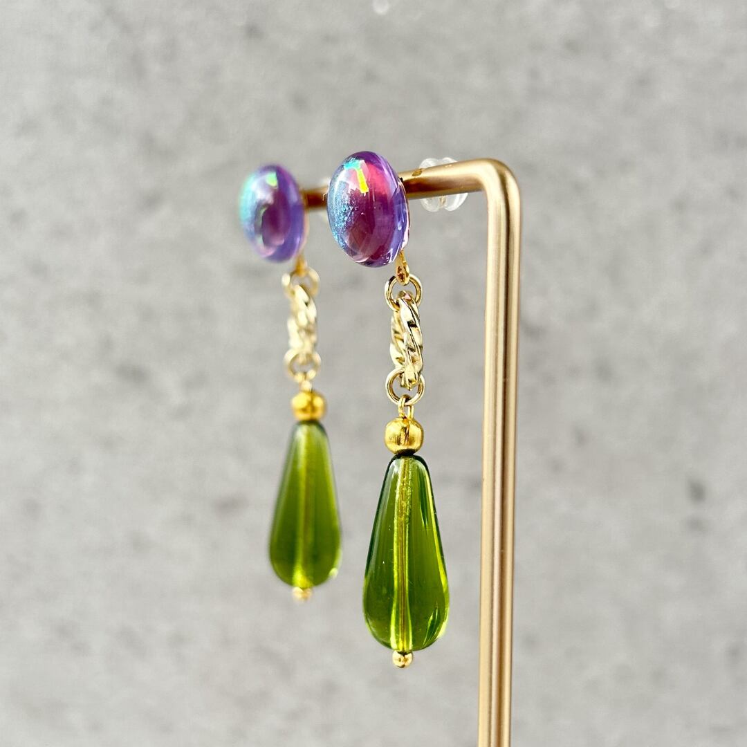 Memory of light-ヴィンデージチェコと虹色ガラス耳飾り-
