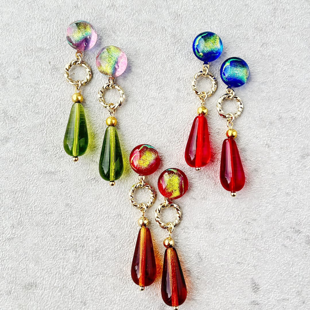 半世紀以上の時を超えて届いたヴィンテージチェコビーズを組み合わせた耳飾りです