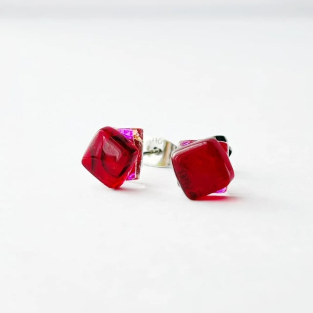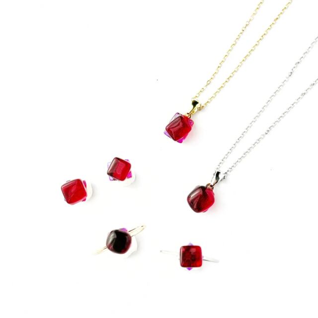 虹の種【1月誕生石カラーガラス/ガーネット】ピアス・イヤリング