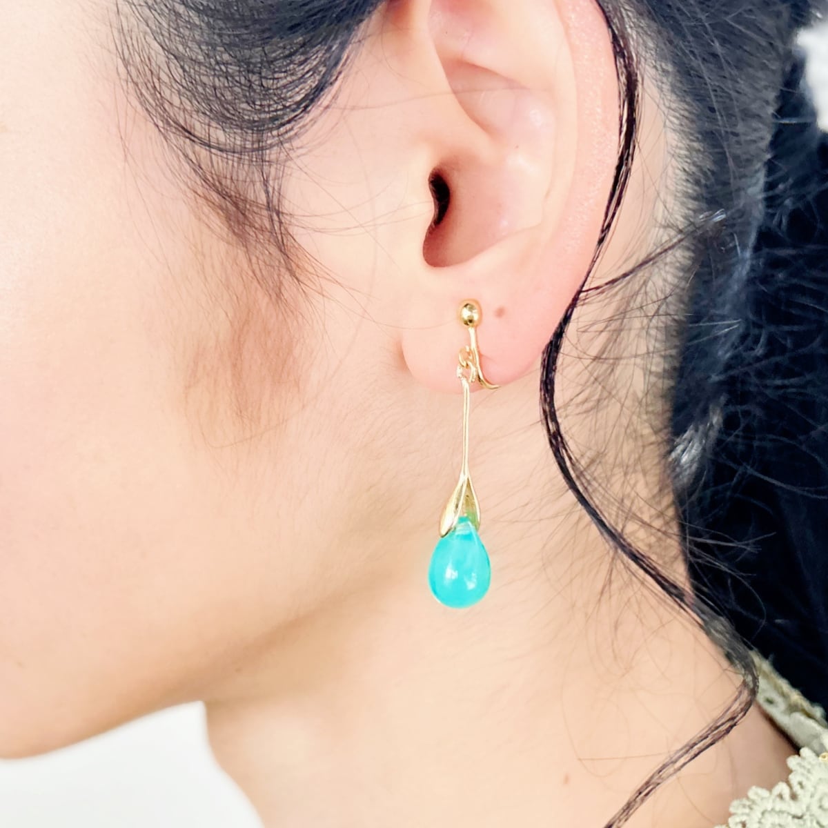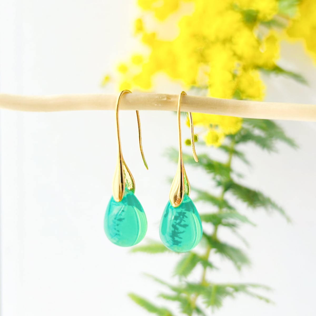 ガラスの木の実フックピアス gold【Mimosa Green】