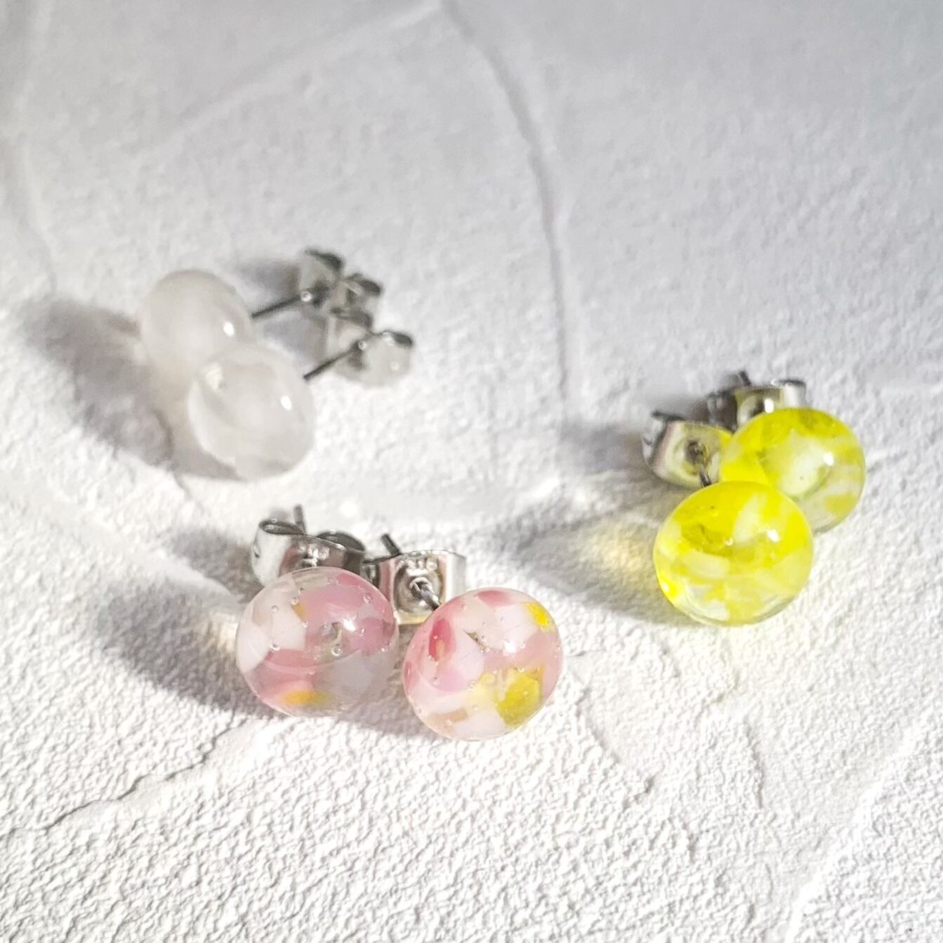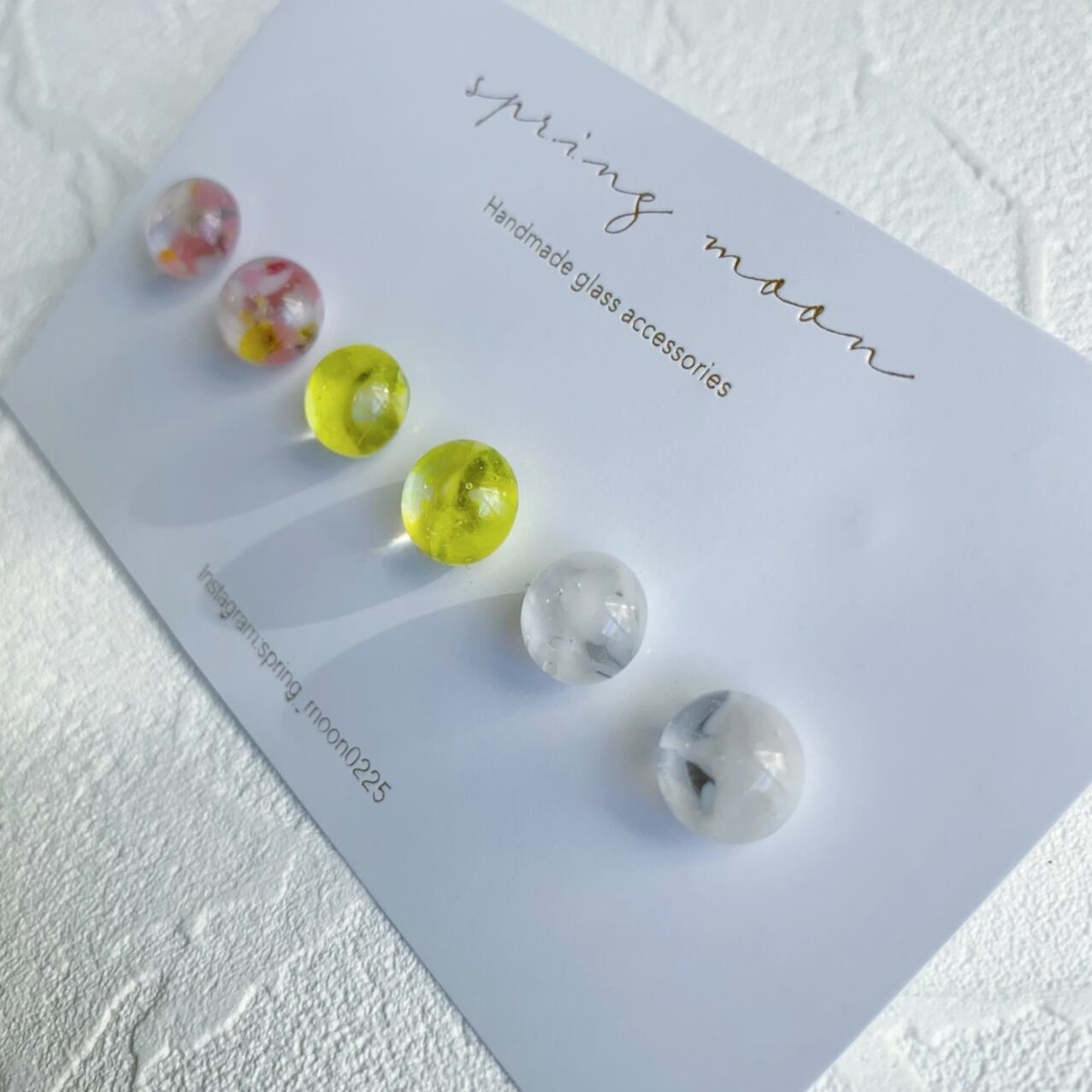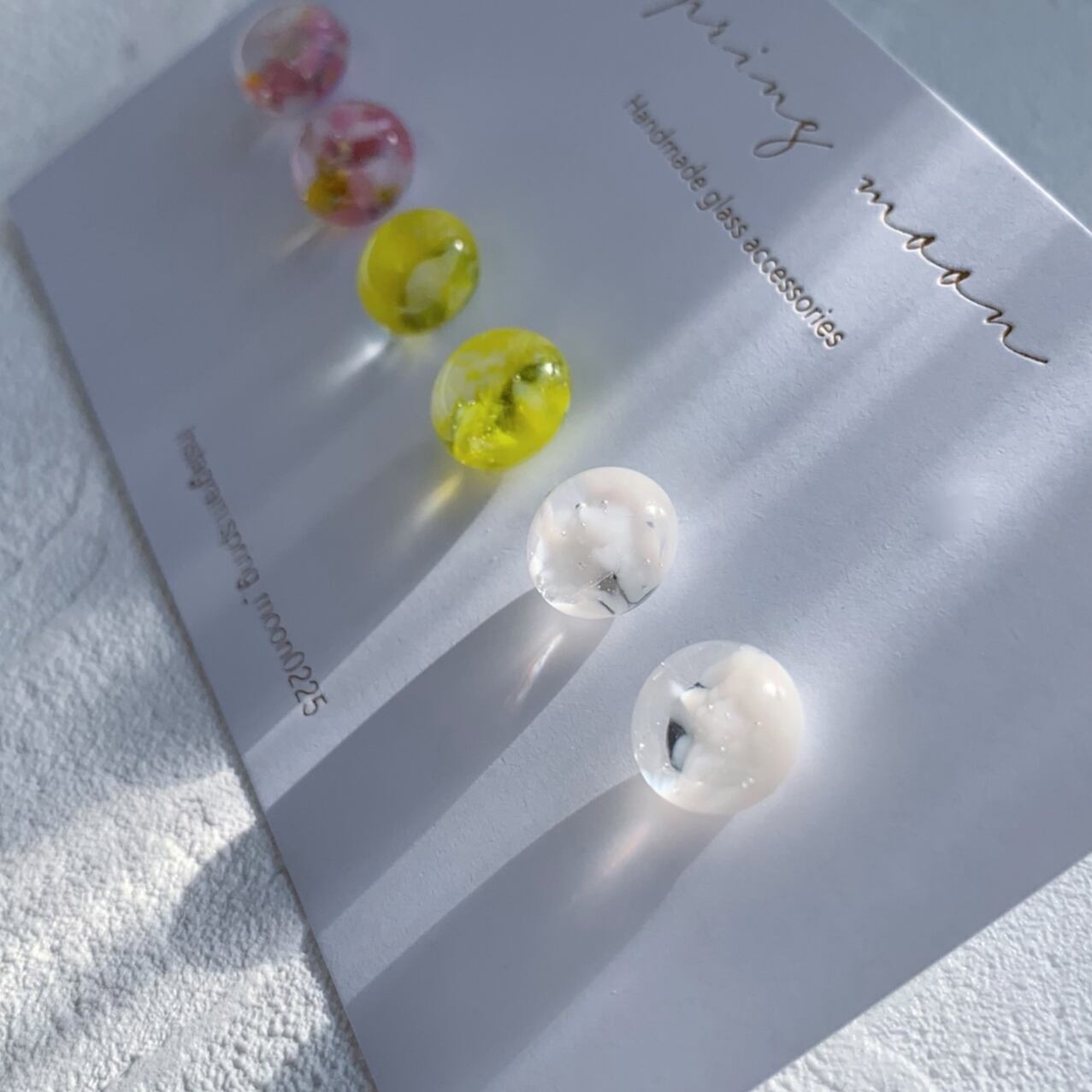 純白で可憐な雪柳をイメージしたガラスのピアスです。