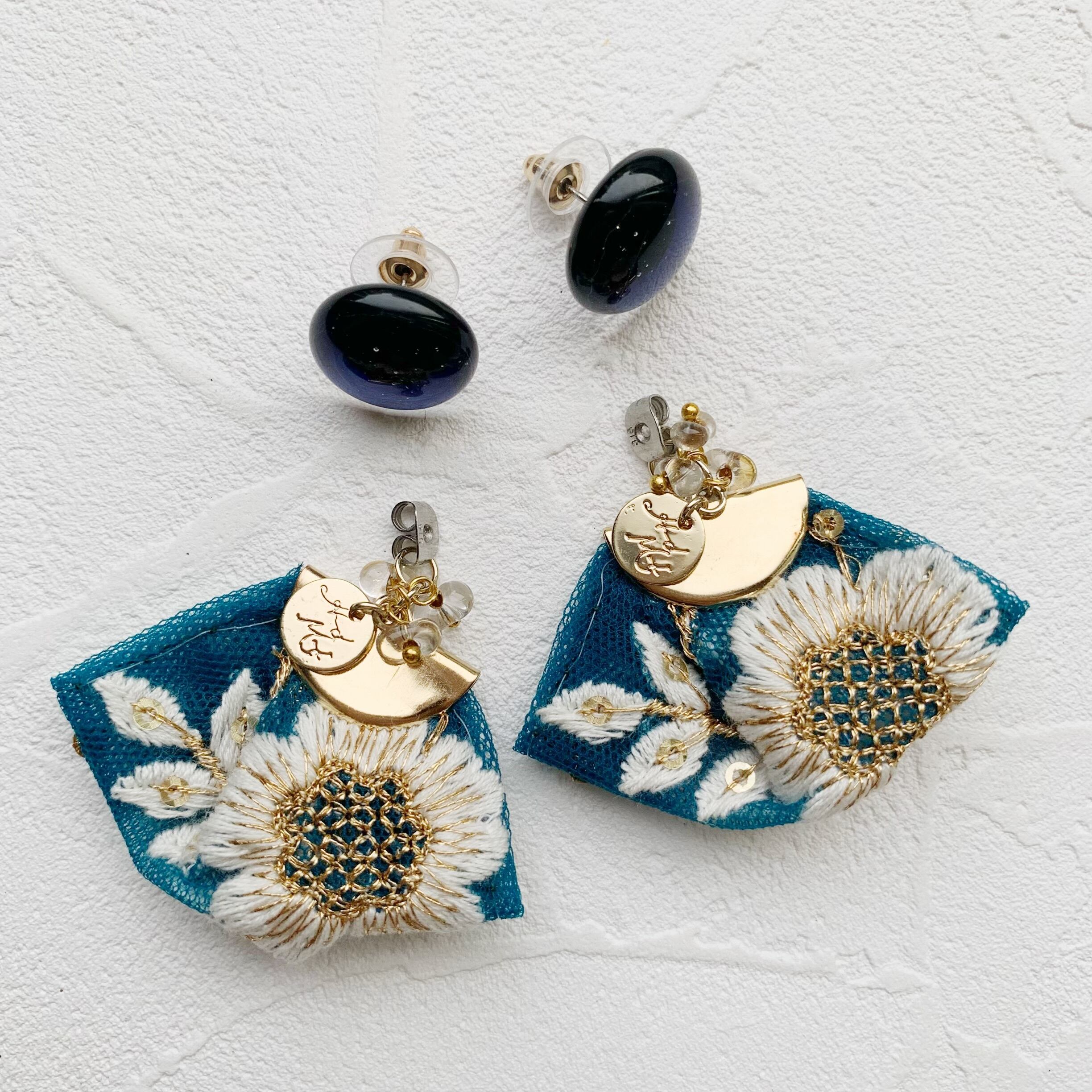 ネイビーのガラスを合わせたピアスです。