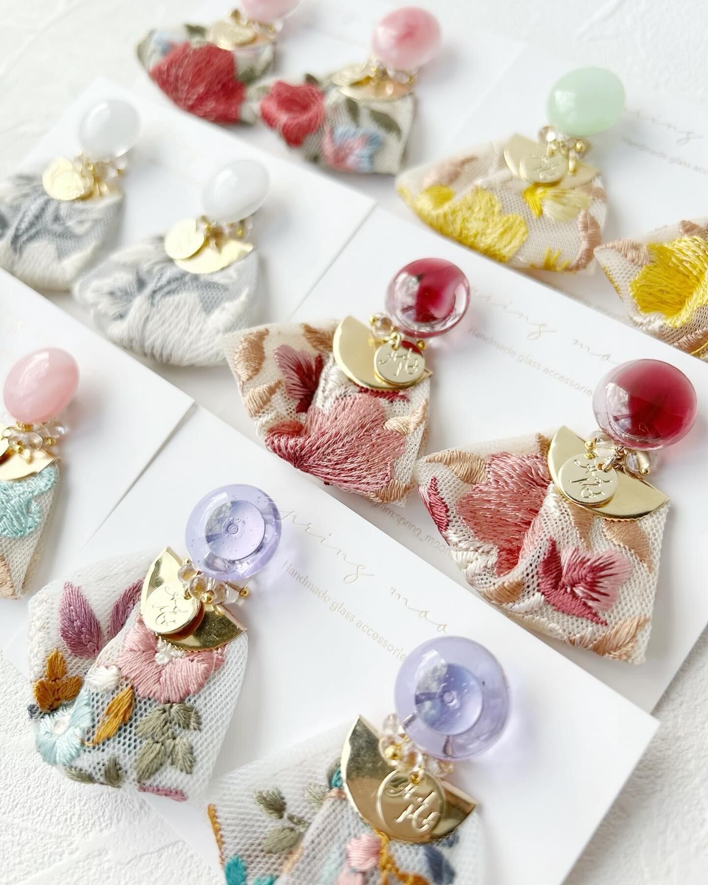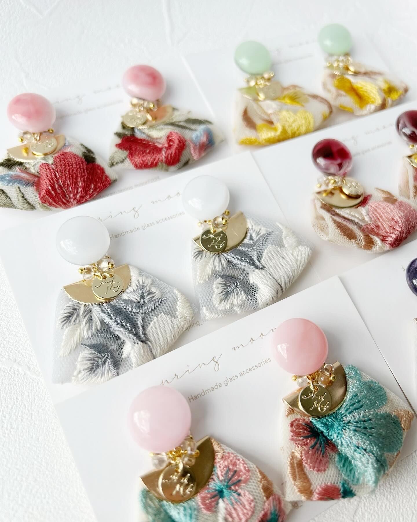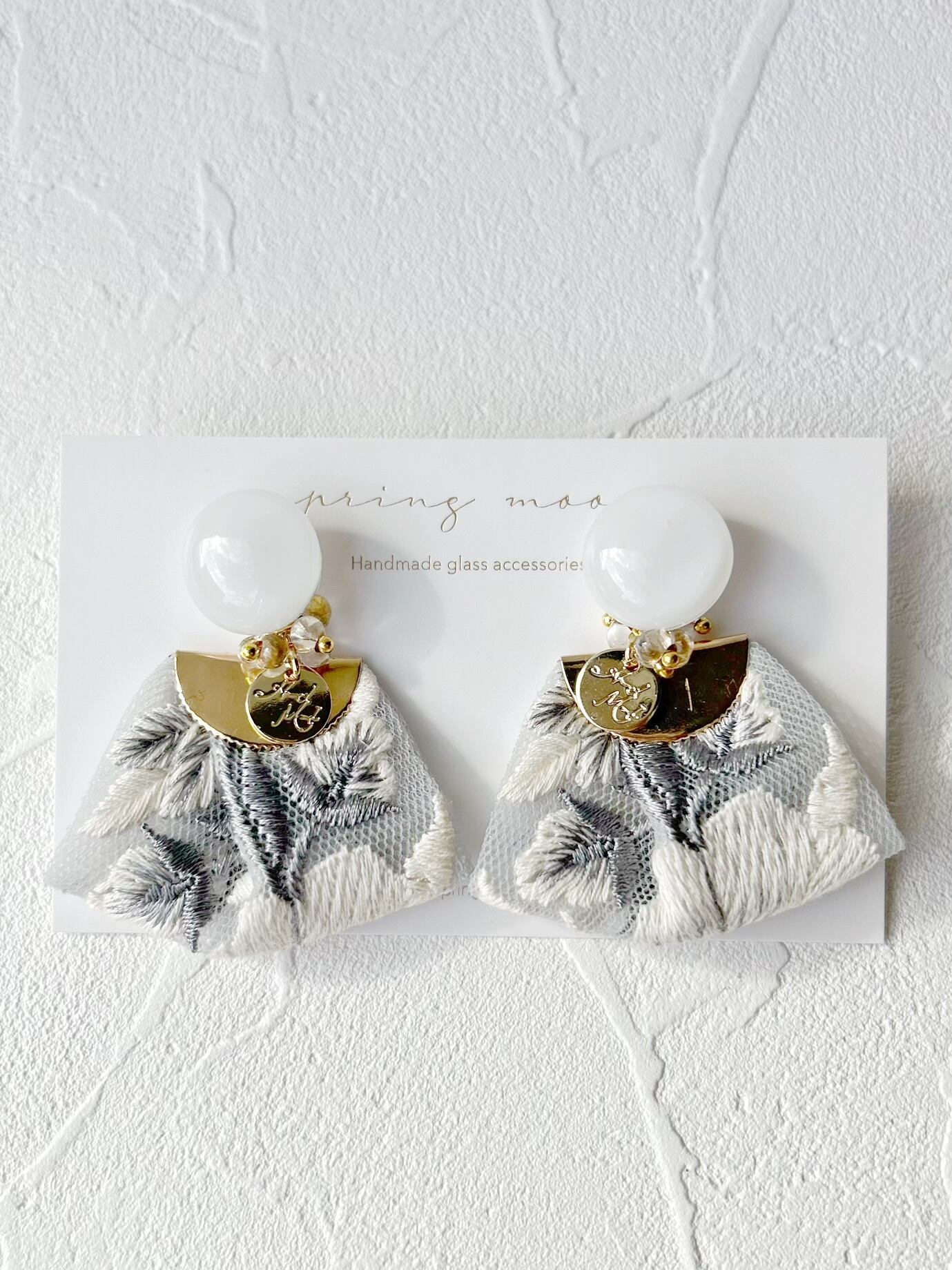 2wayインド刺繍タッセルガラスピアス-spring white-