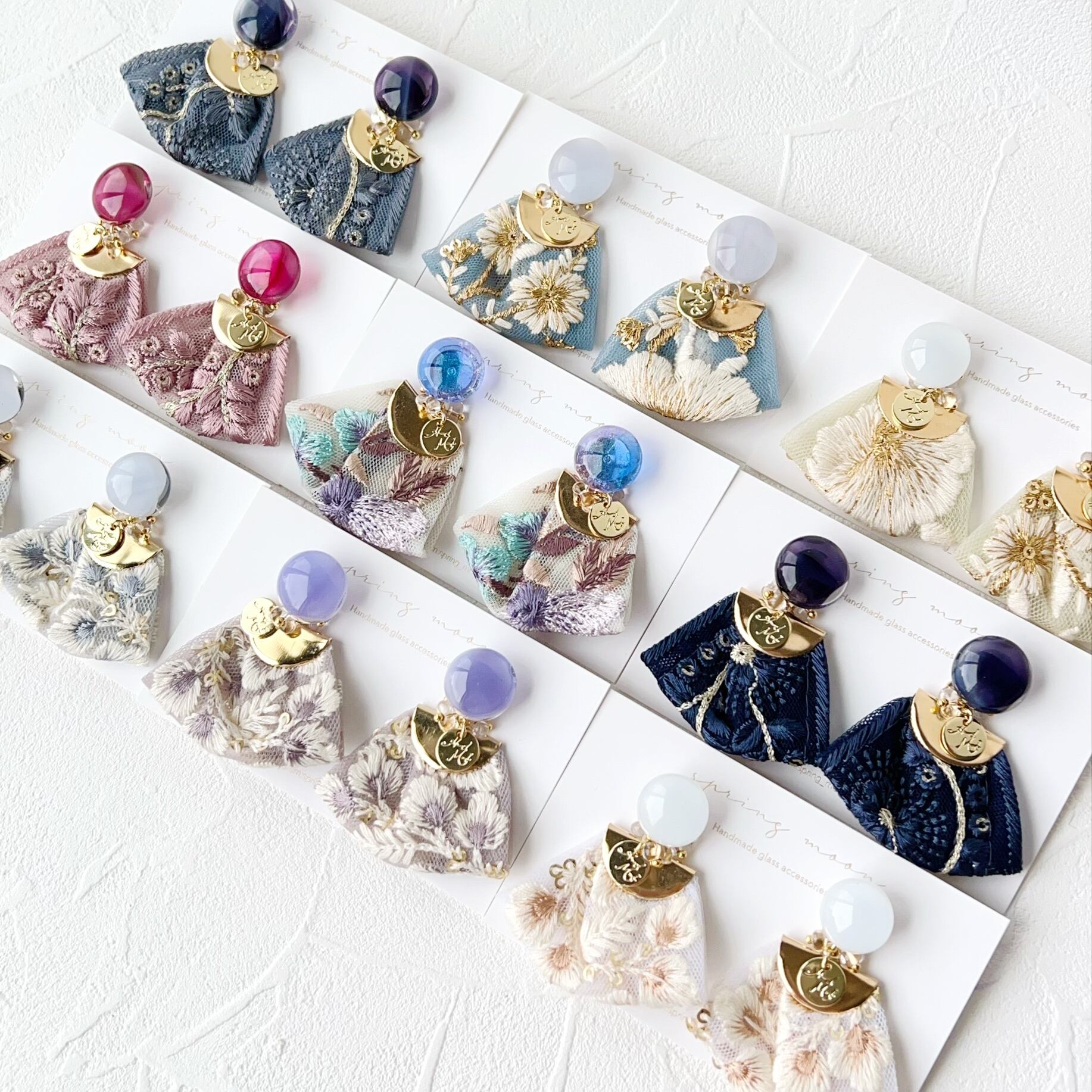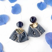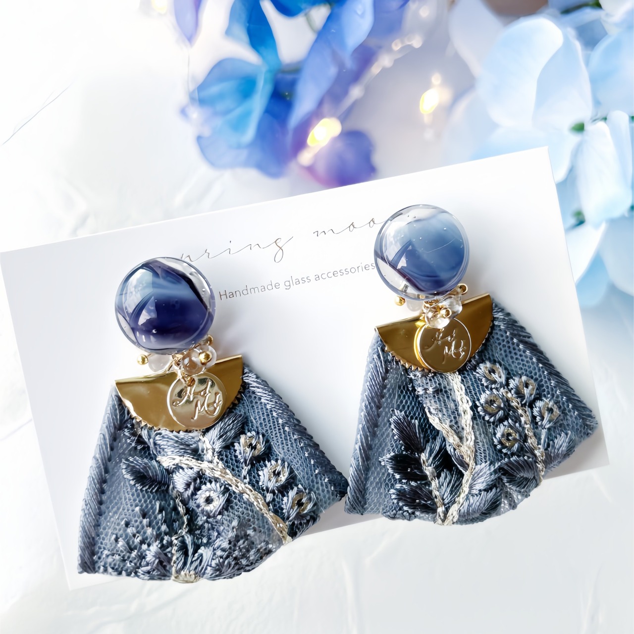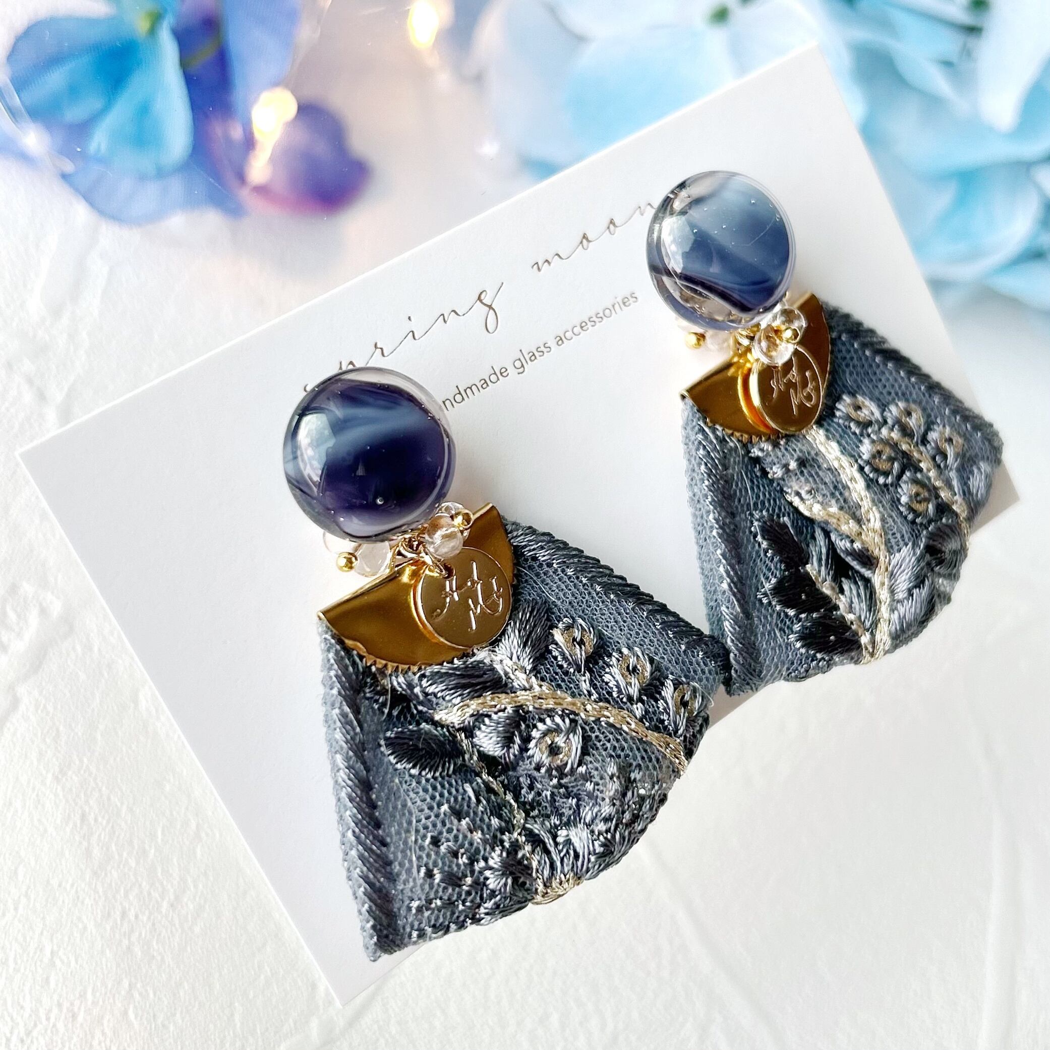 2wayインド刺繍タッセルのガラス耳飾り-紫陽花シリーズ-"gray"