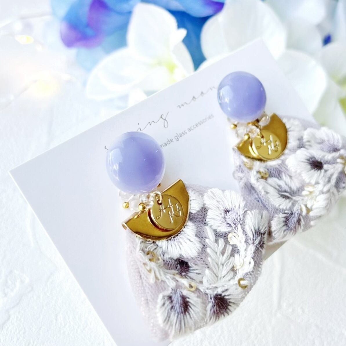 2wayインド刺繍タッセルのガラス耳飾り-紫陽花シリーズ- "pastel purple"
