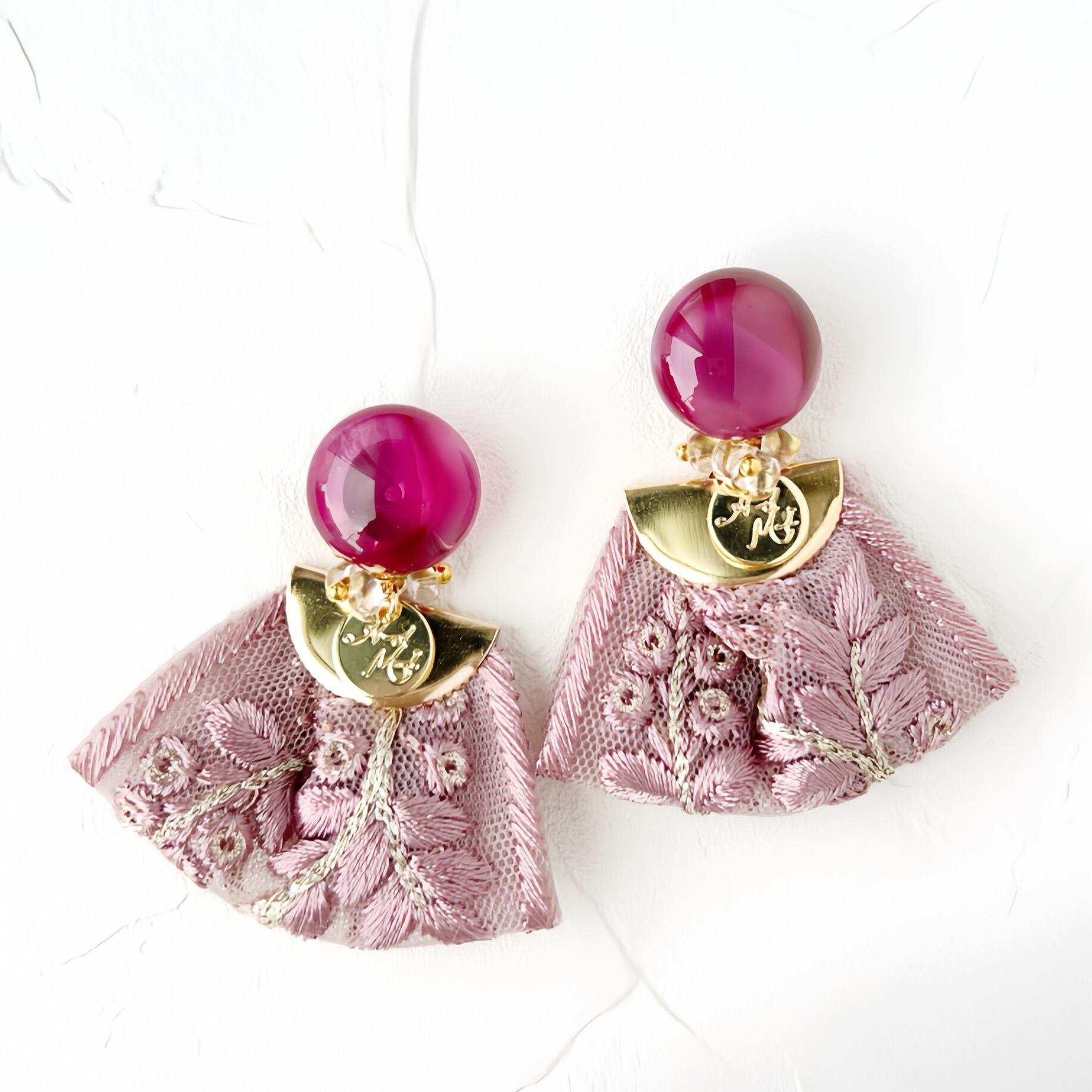 2wayインド刺繍タッセルのガラス耳飾り-紫陽花シリーズ-"red purple"