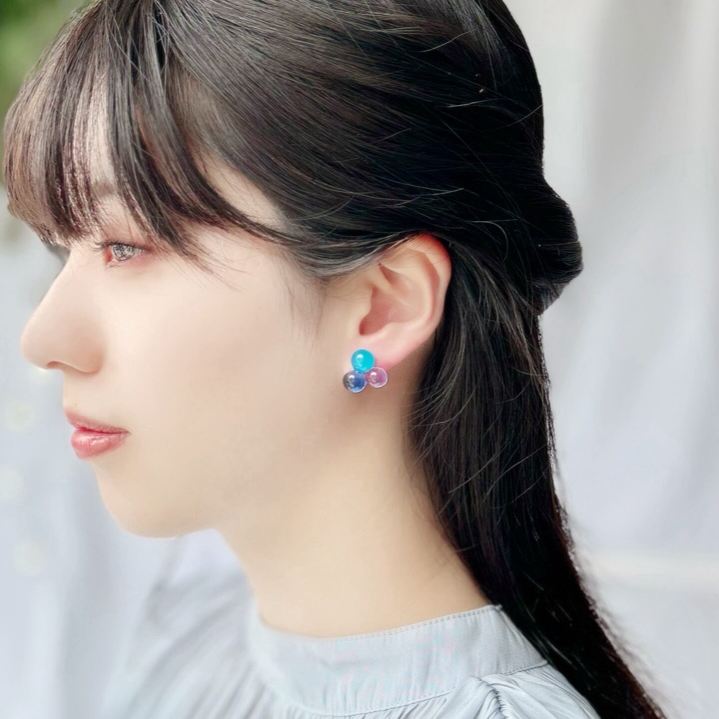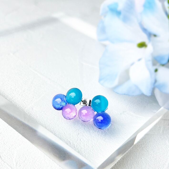 triple glass earrings -紫陽花-