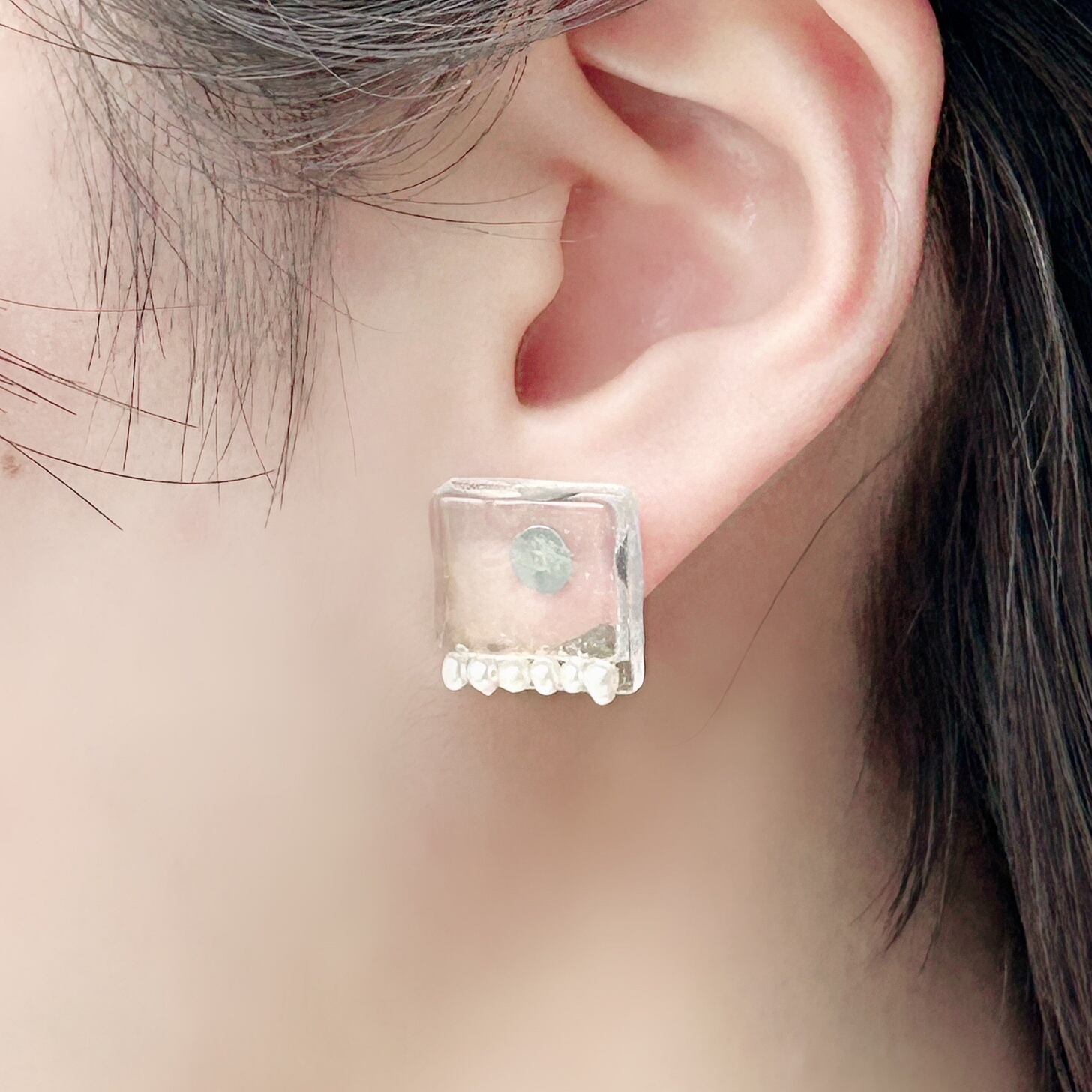 イヤリングは耳の痛み防止用シリコンカバーをお付けします