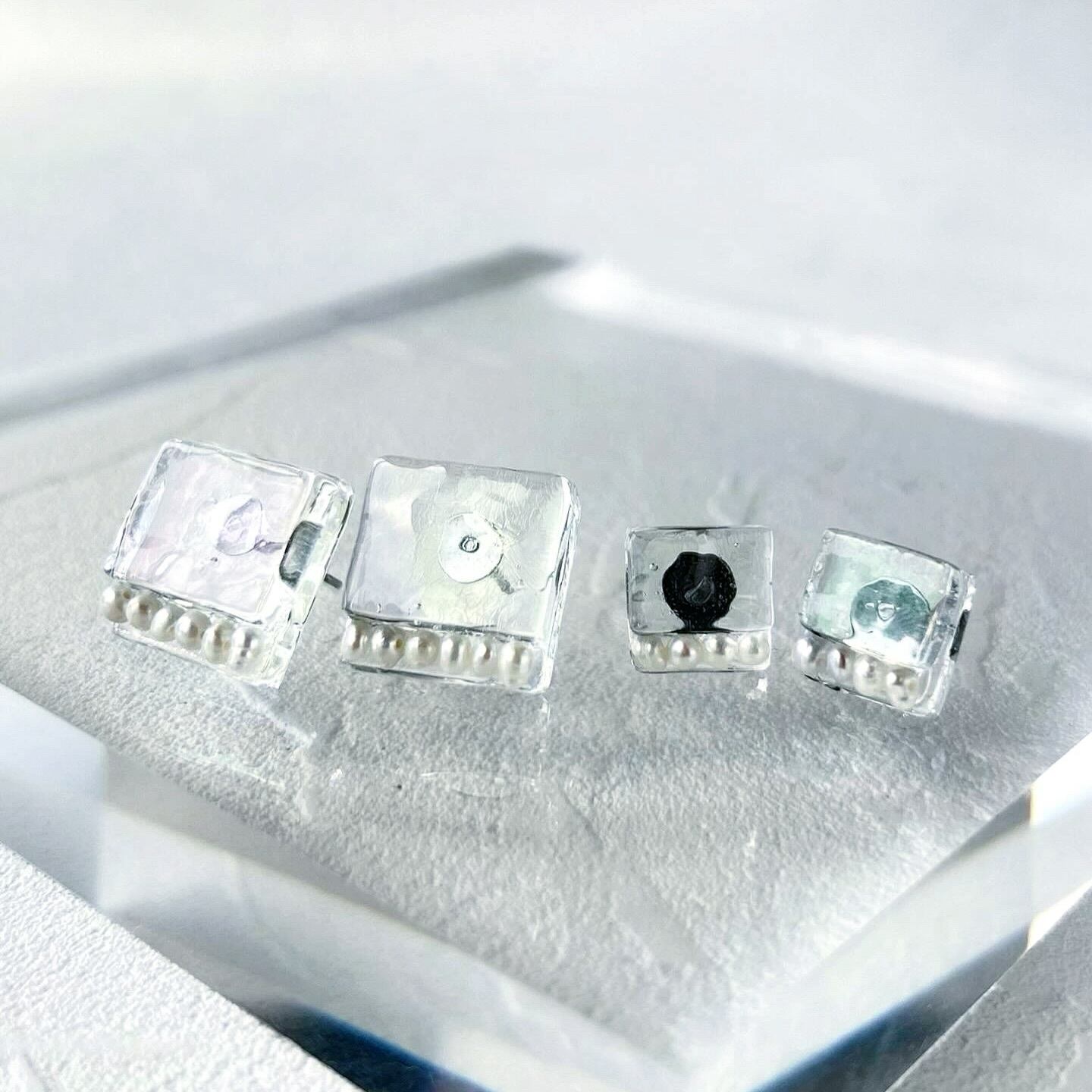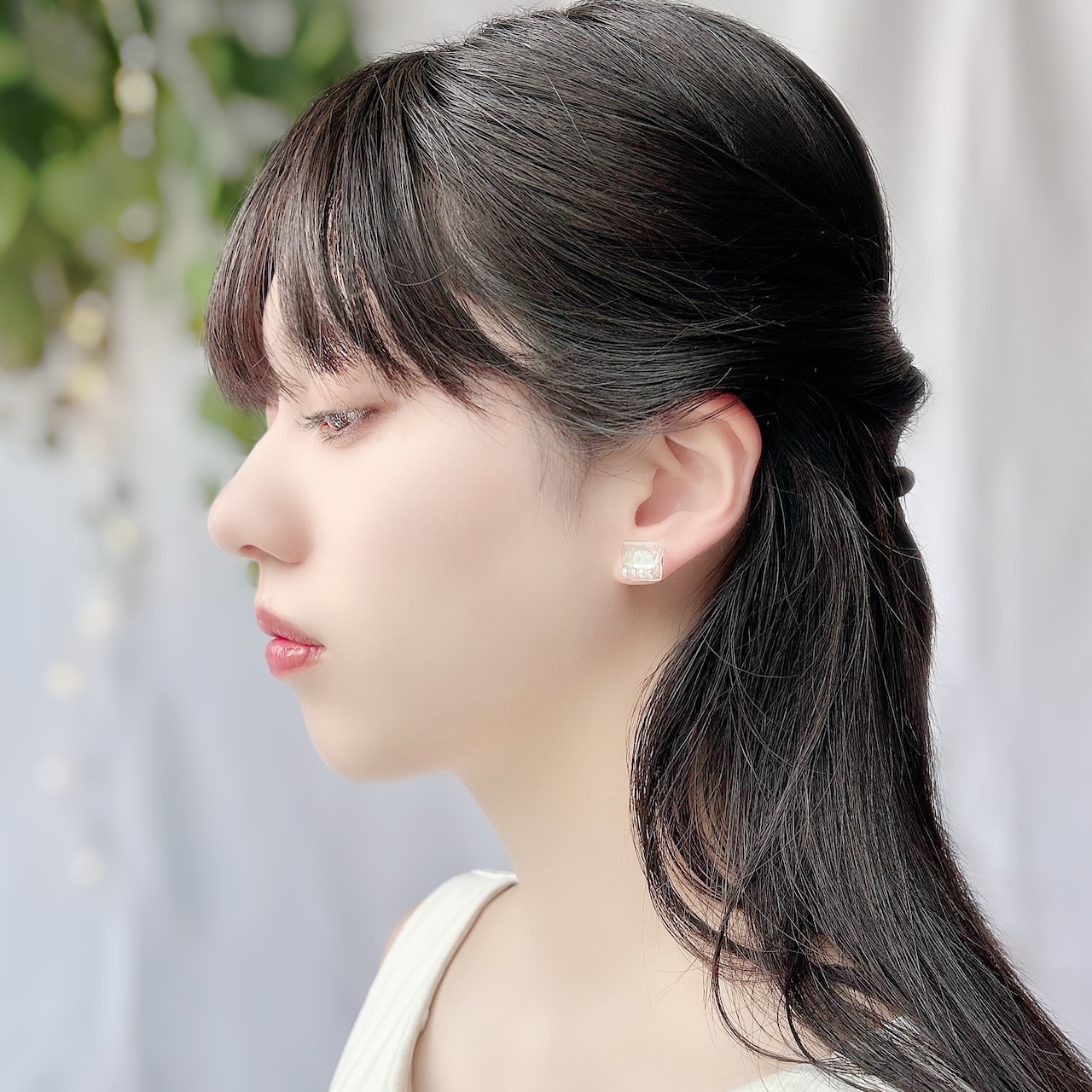 イヤリングは耳の痛み防止用シリコンカバーをお付けします