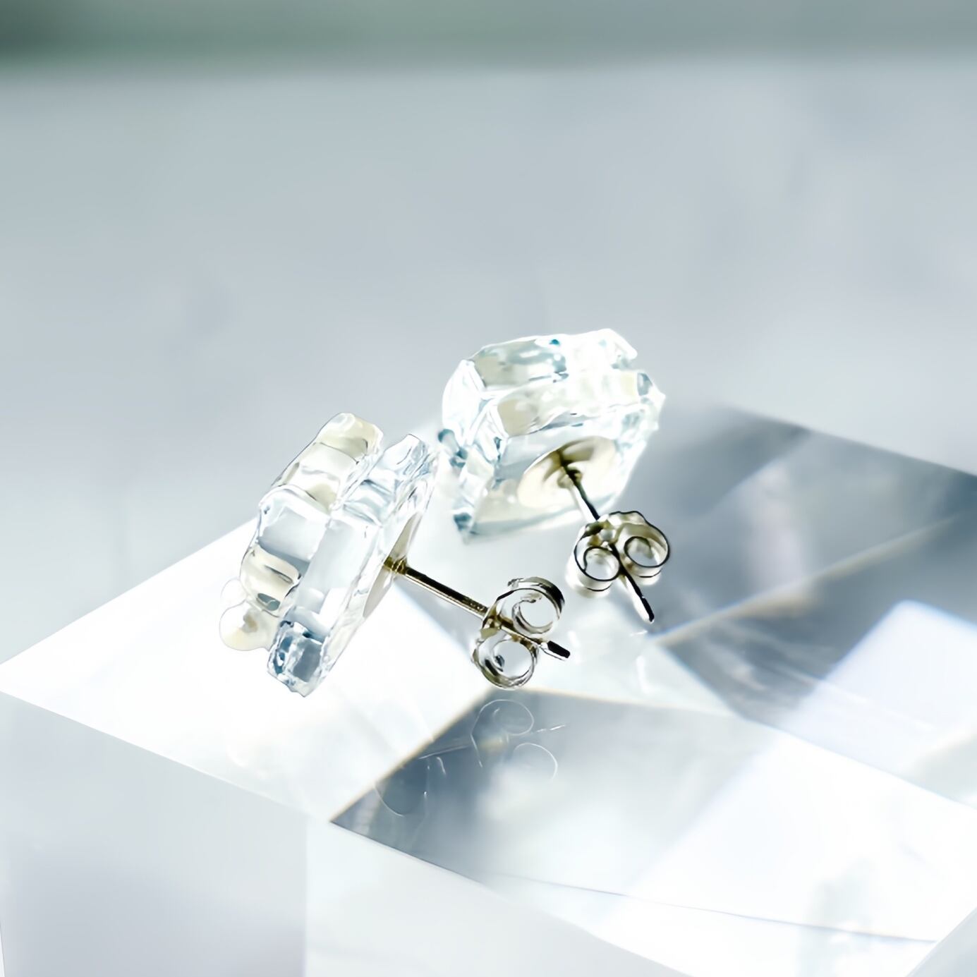 氷ガラスの淡水パール耳飾りークリアオーロラ S ー