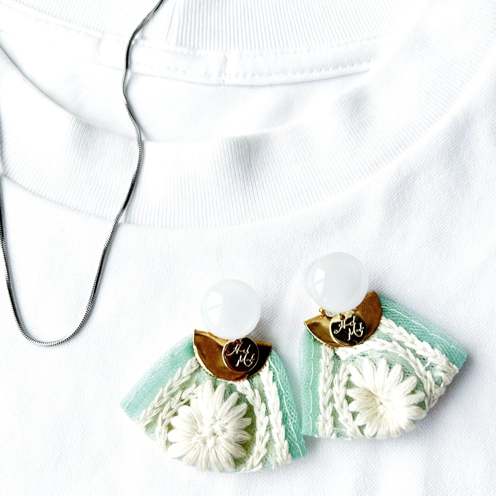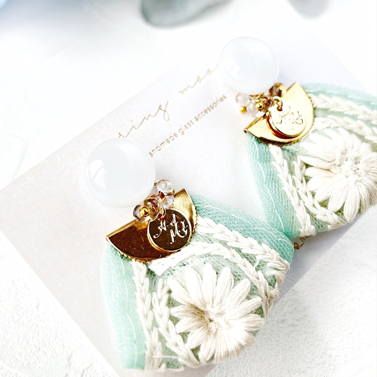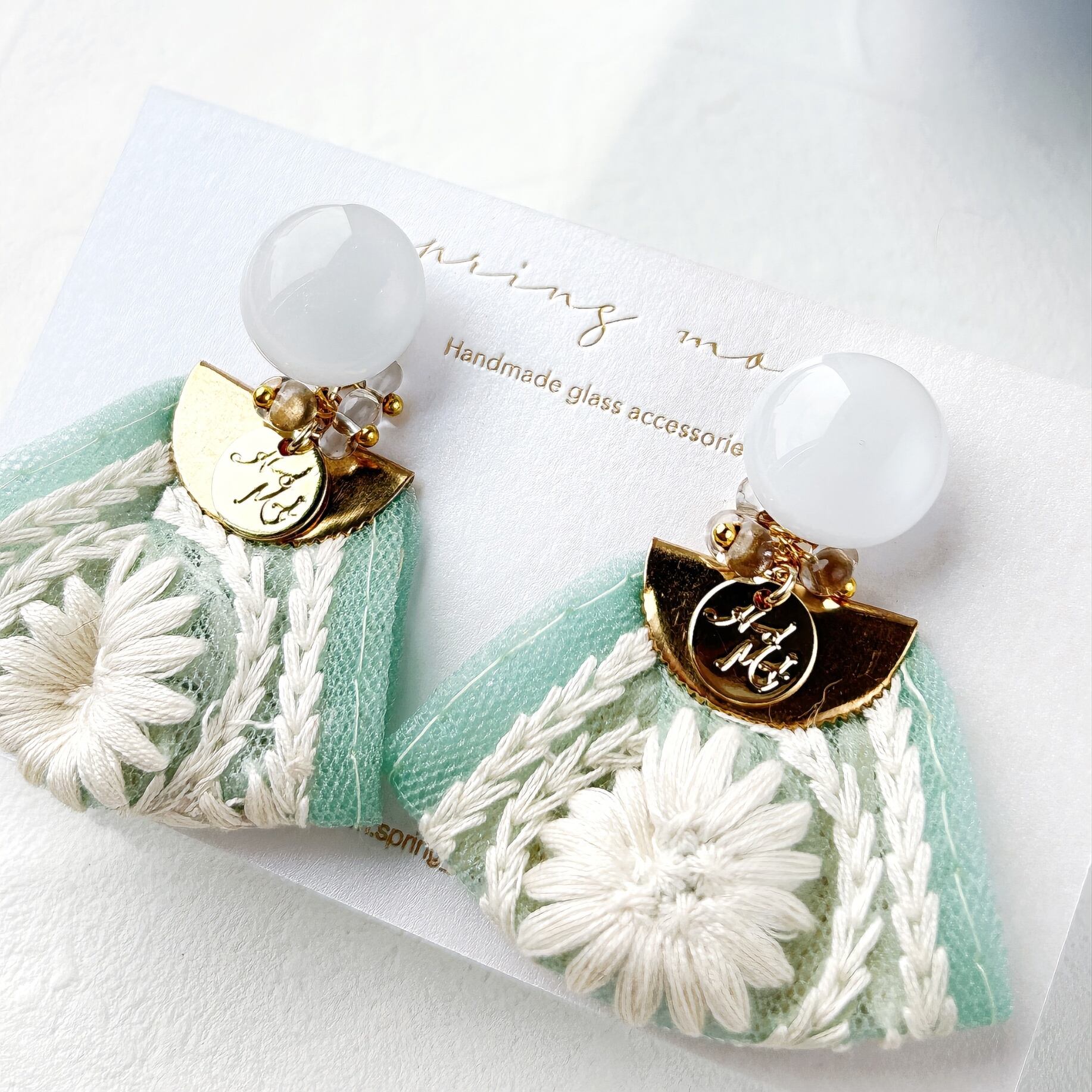 2wayインド刺繍タッセルガラス耳飾り-casual mint-