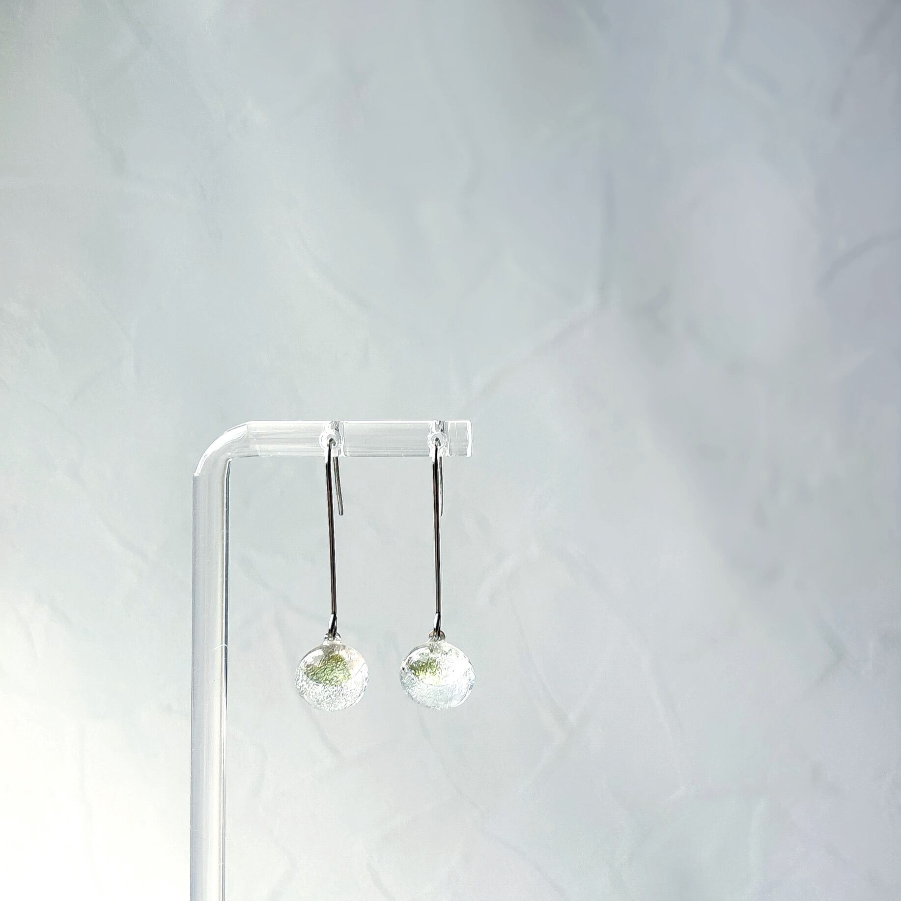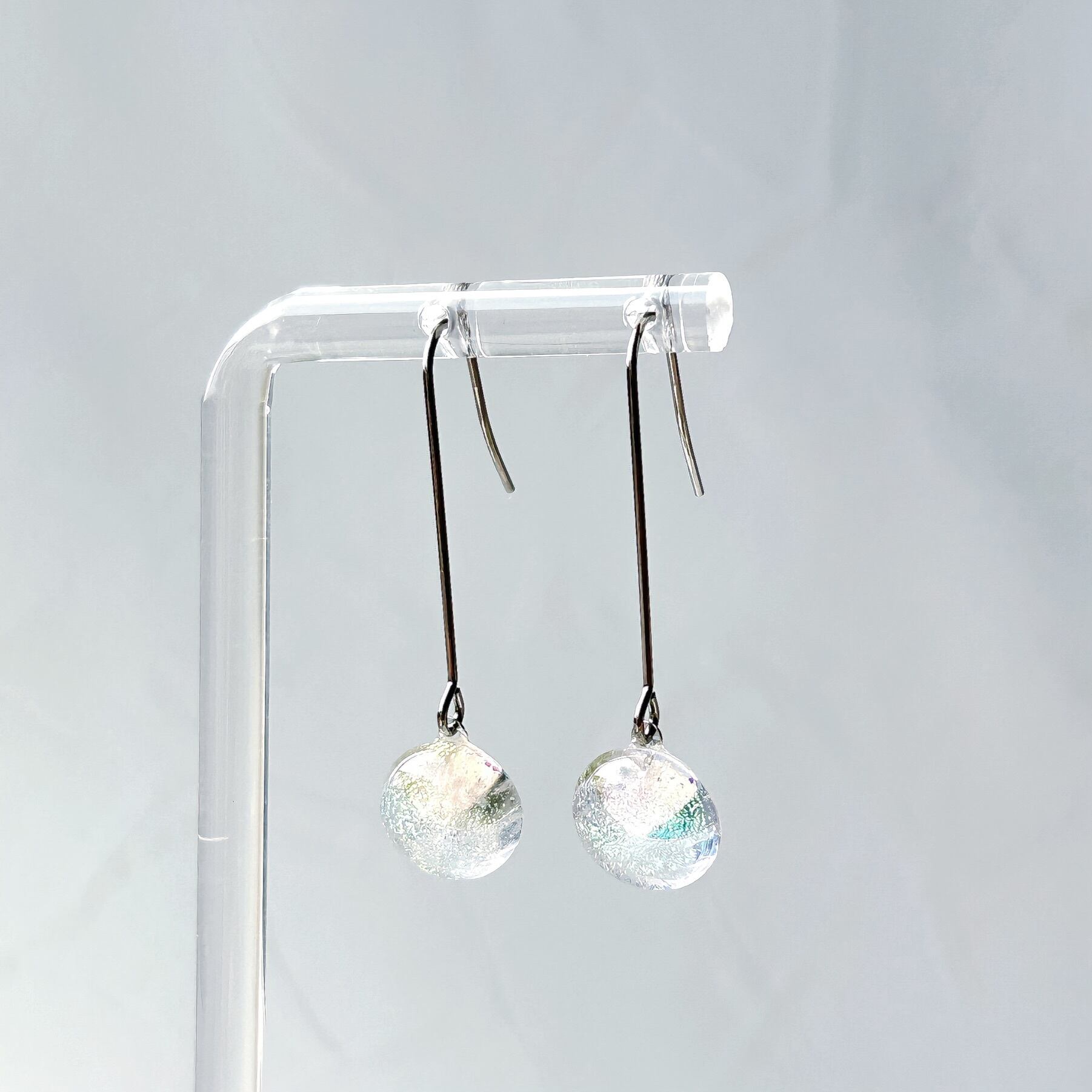 虹色ガラスのロングフックピアス-クリア-