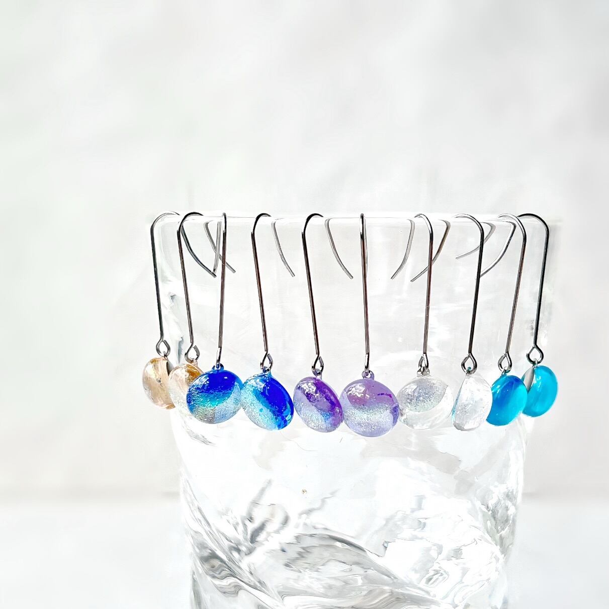虹色ガラスのロングフックピアス