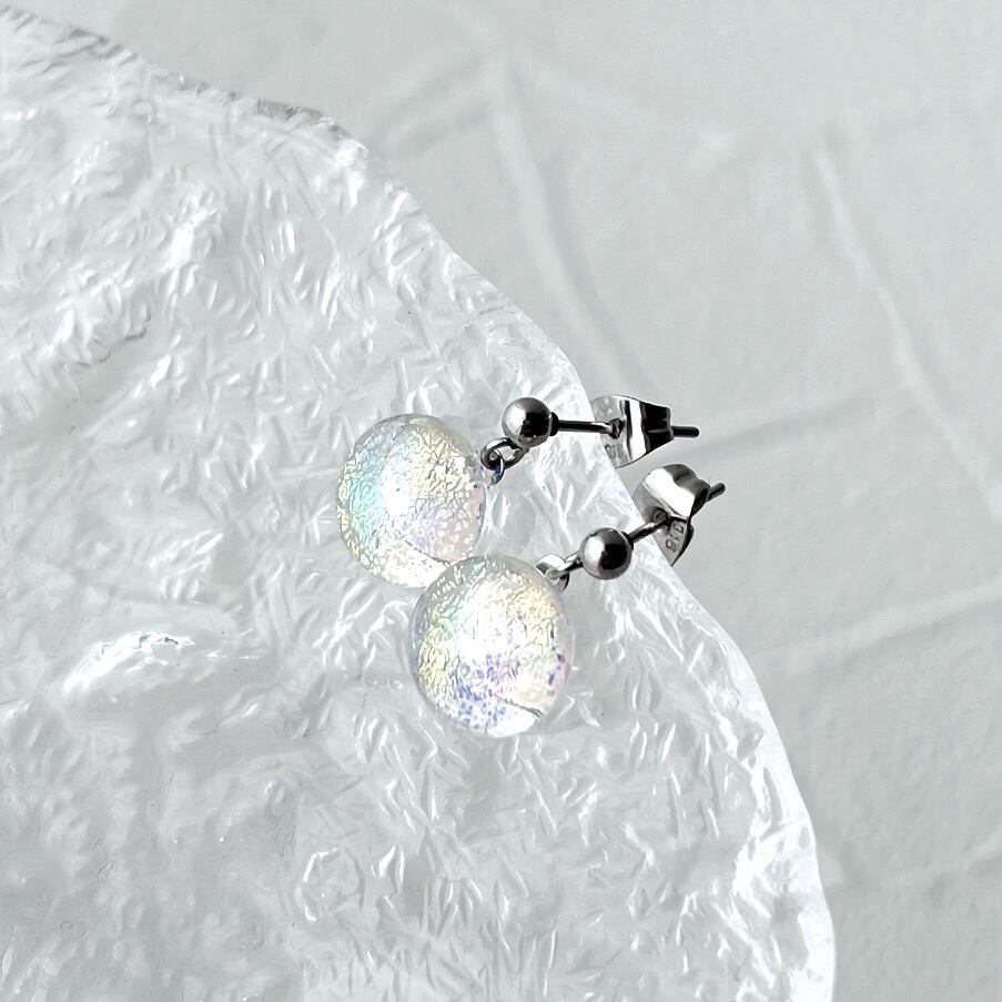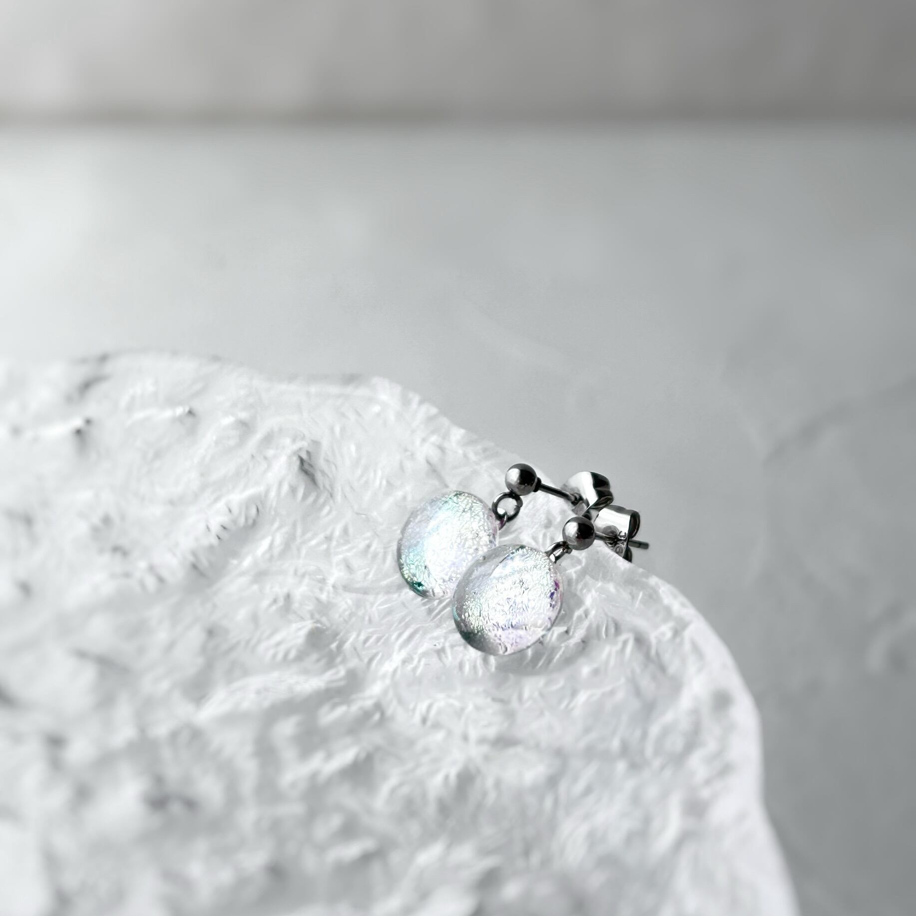 虹色ガラスのスウィング耳飾り-クリア-