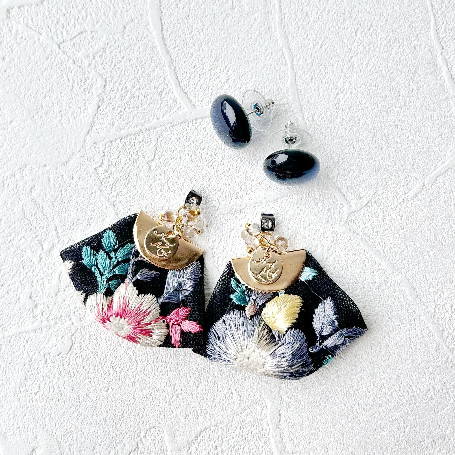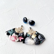 秋色ガラスのインド刺繍耳飾り-navy blue black-