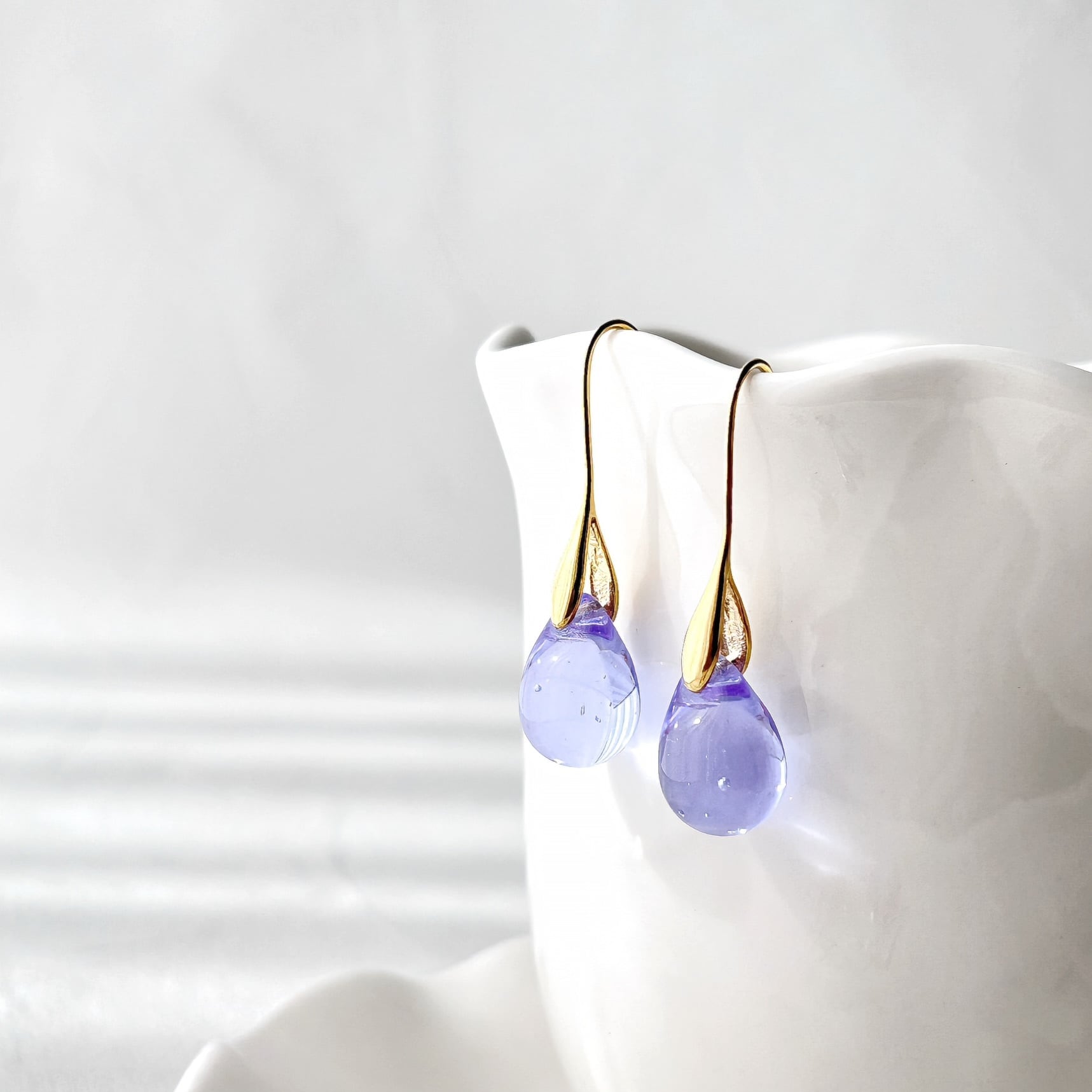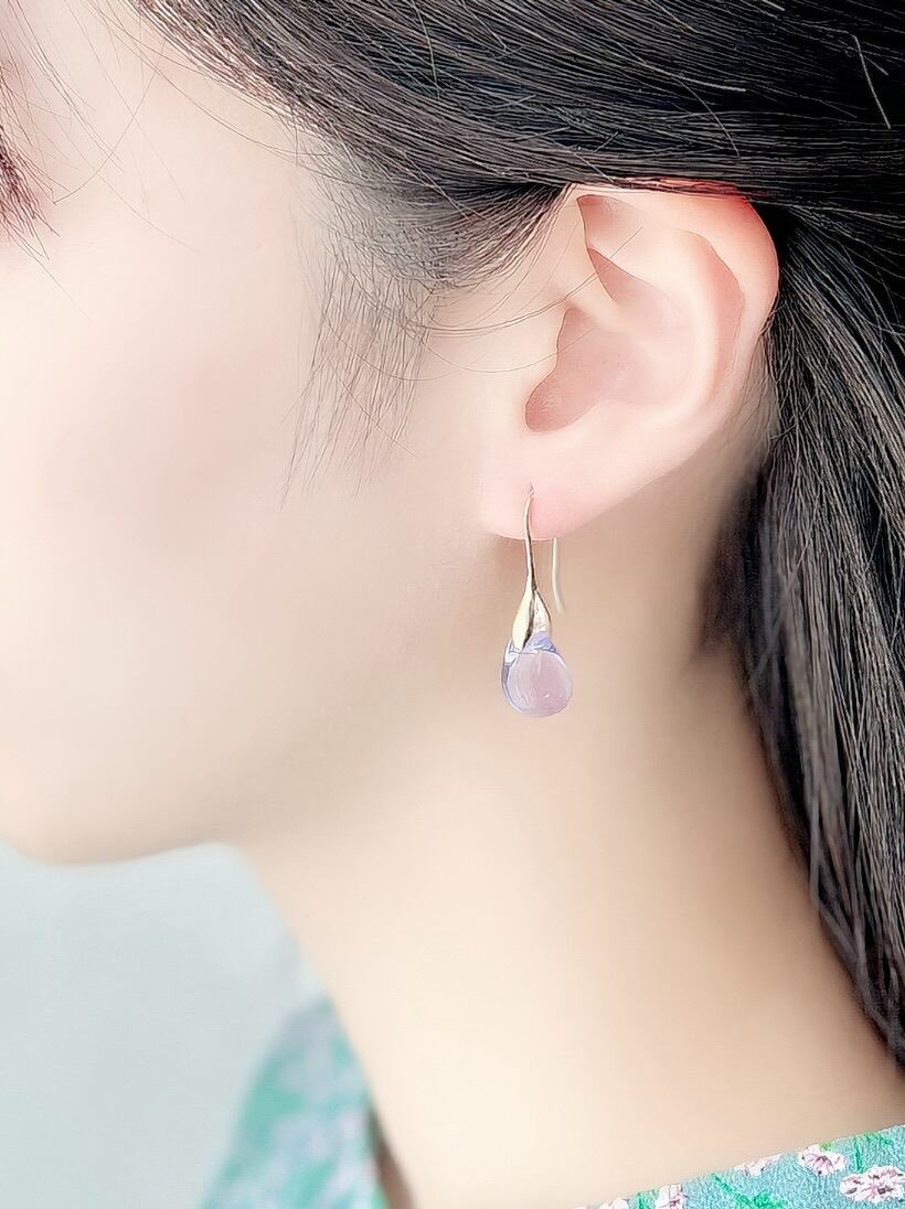 ガラスの木の実フックピアスgold -lavender-