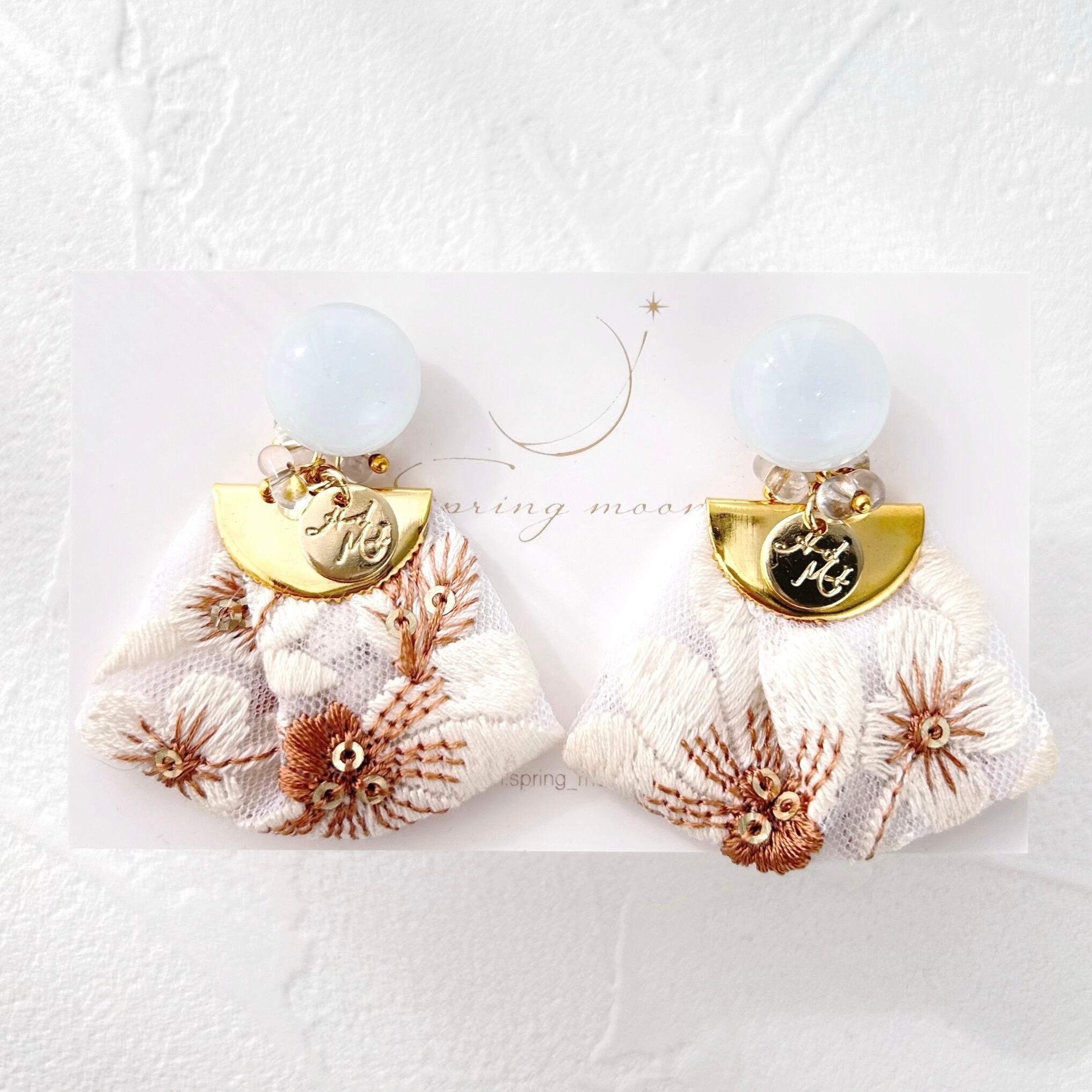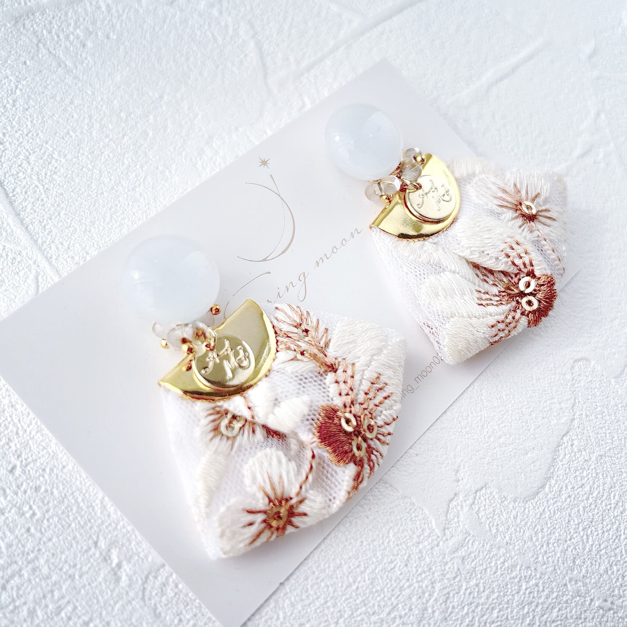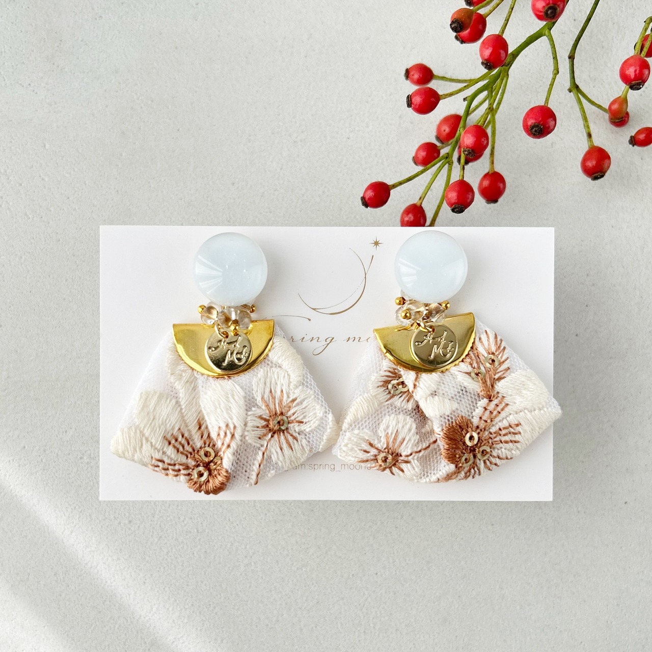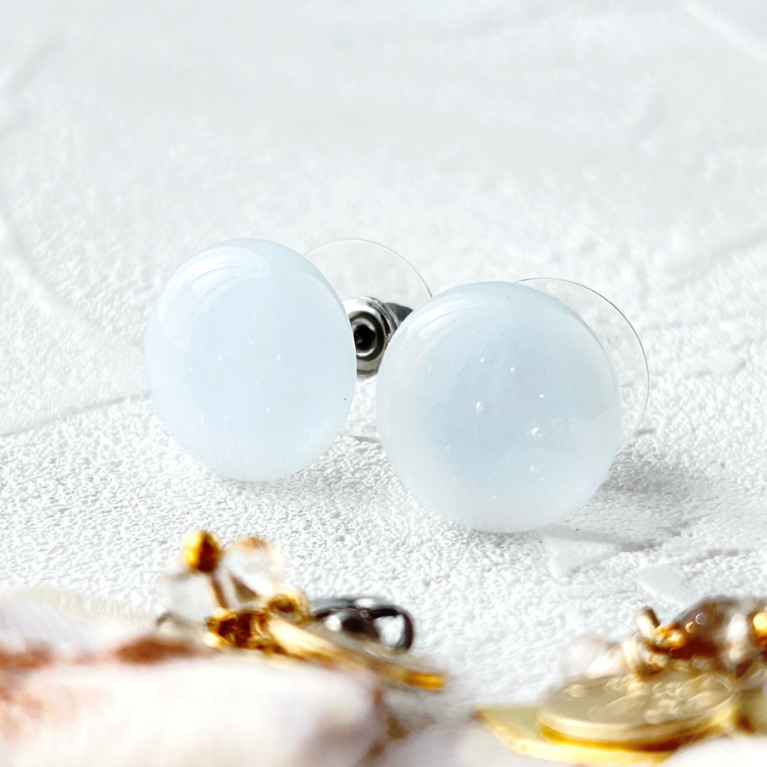 冬の静けさを感じる、雪のように美しい 純白のガラスを使用した耳飾り。